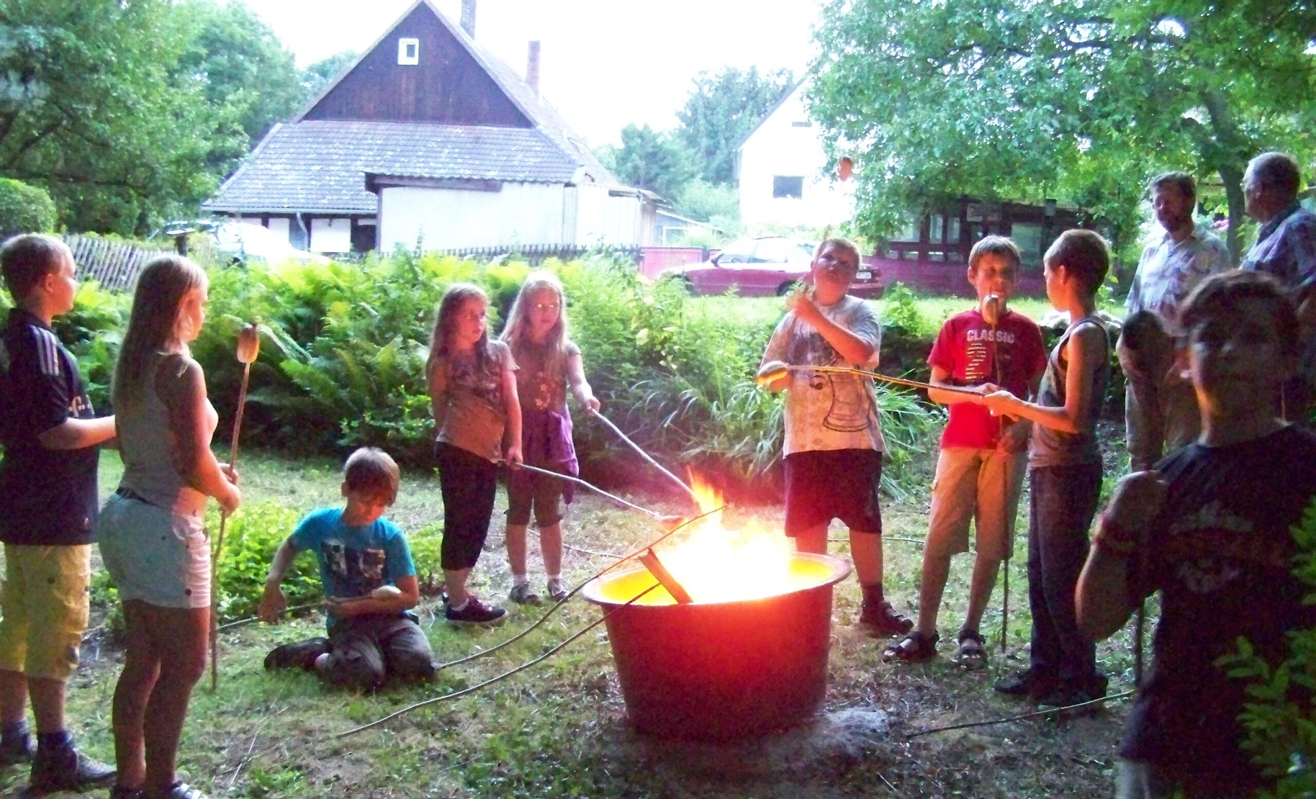 1. August 2012, 20-0 Uhr Vor der Nachtwanderung wurden im Museumsgarten Würstchen und Marshmallows über dem Lagerfeuer geröstet, ehe Henning