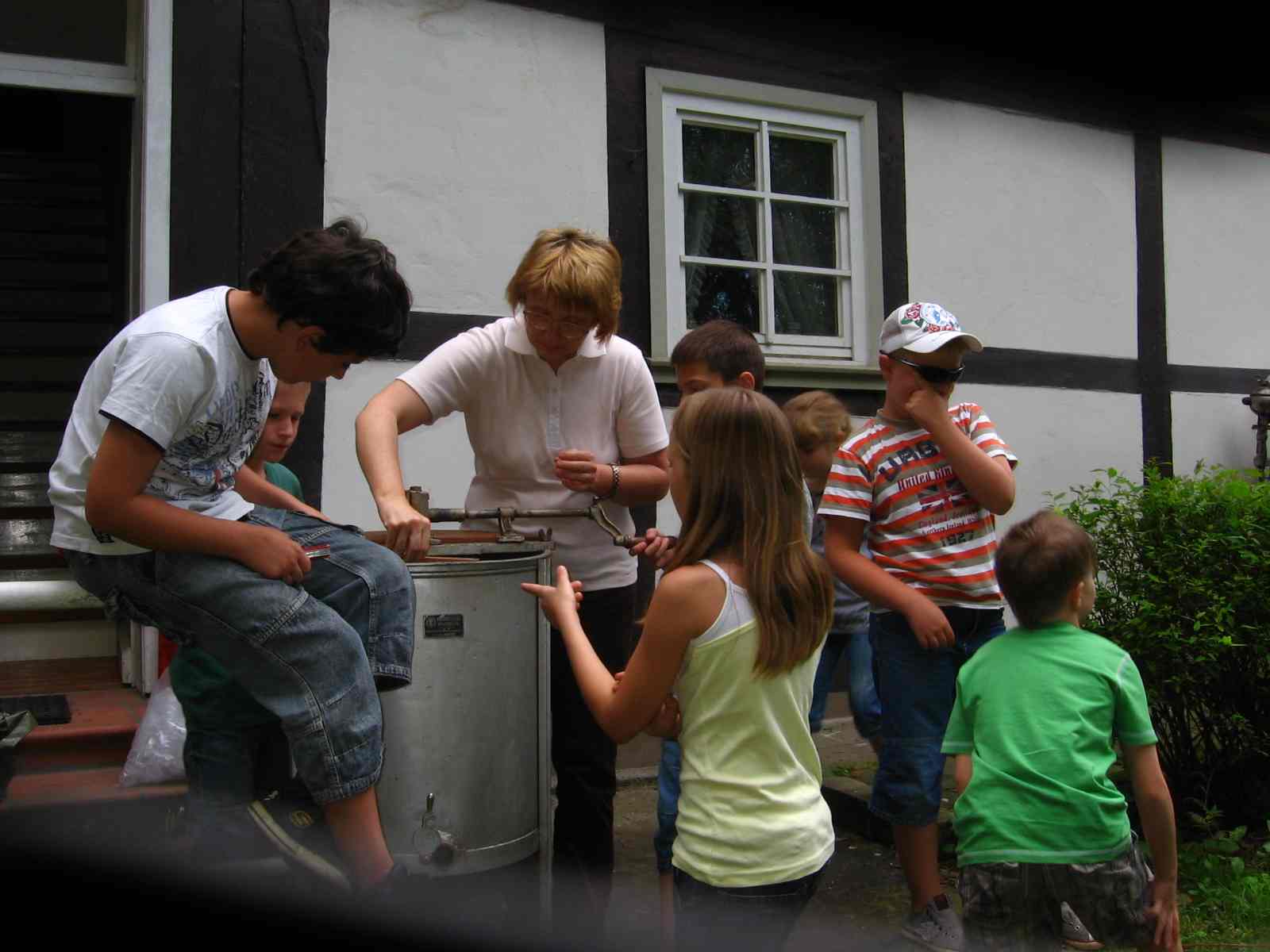 6. August 2012, 15-17.30 Uhr Ein Blick ins Bienenvolk warfen die Kinder mit dem Imker Henning Schacht und kreierten Bienenwachssalben