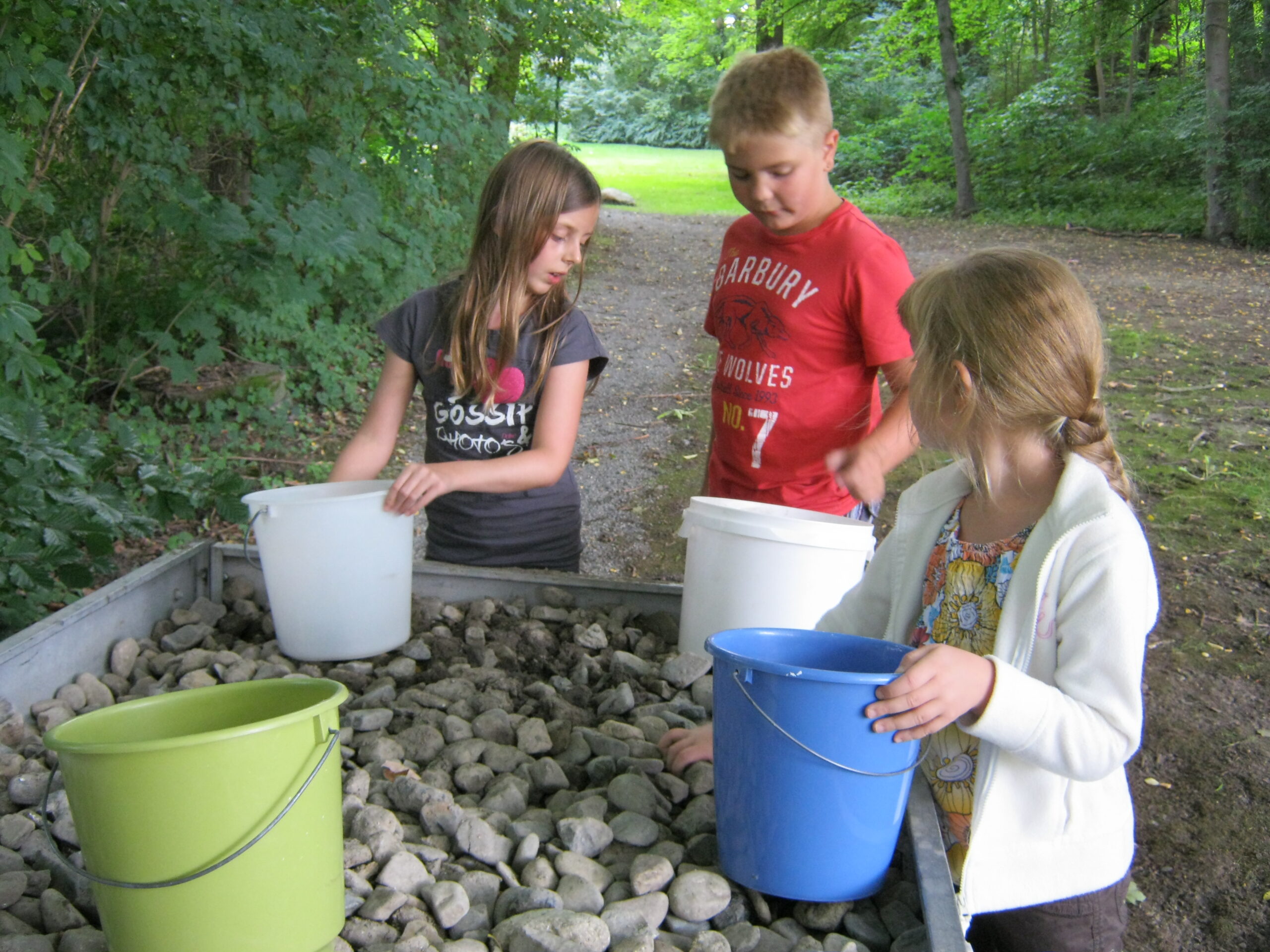 22. August 2012, 15.30-17.30 Uhr Bei der Umweltaktion an der Wedde am Heimathaus schleppten die Kinder eifrig große Steine ins