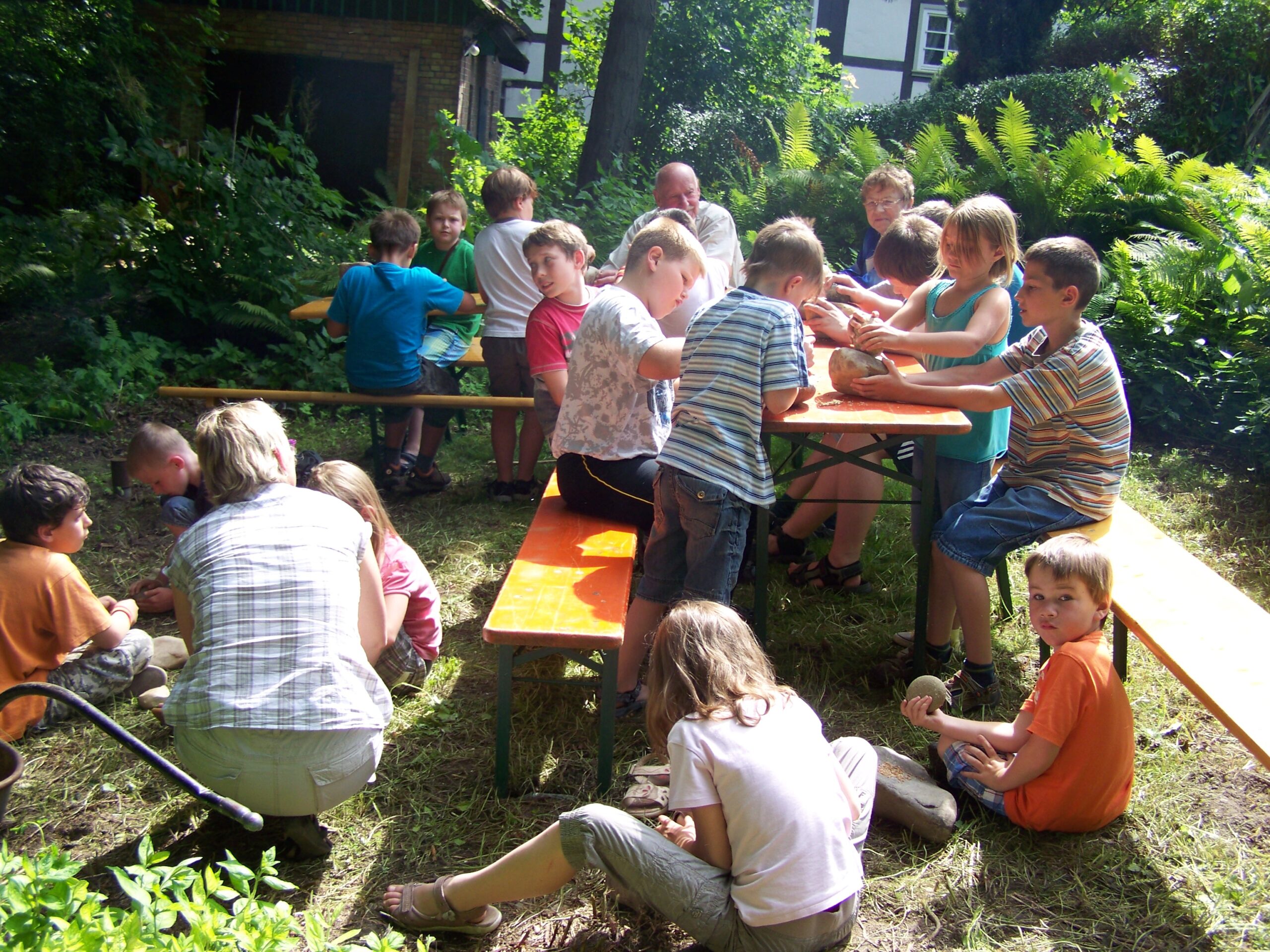 24. Juli 2012 Über 100 Kinder beteiligten sich an den vielfältigen Aktionen, wie Schatzsuche, Brot backen wie in der Steinzeit,