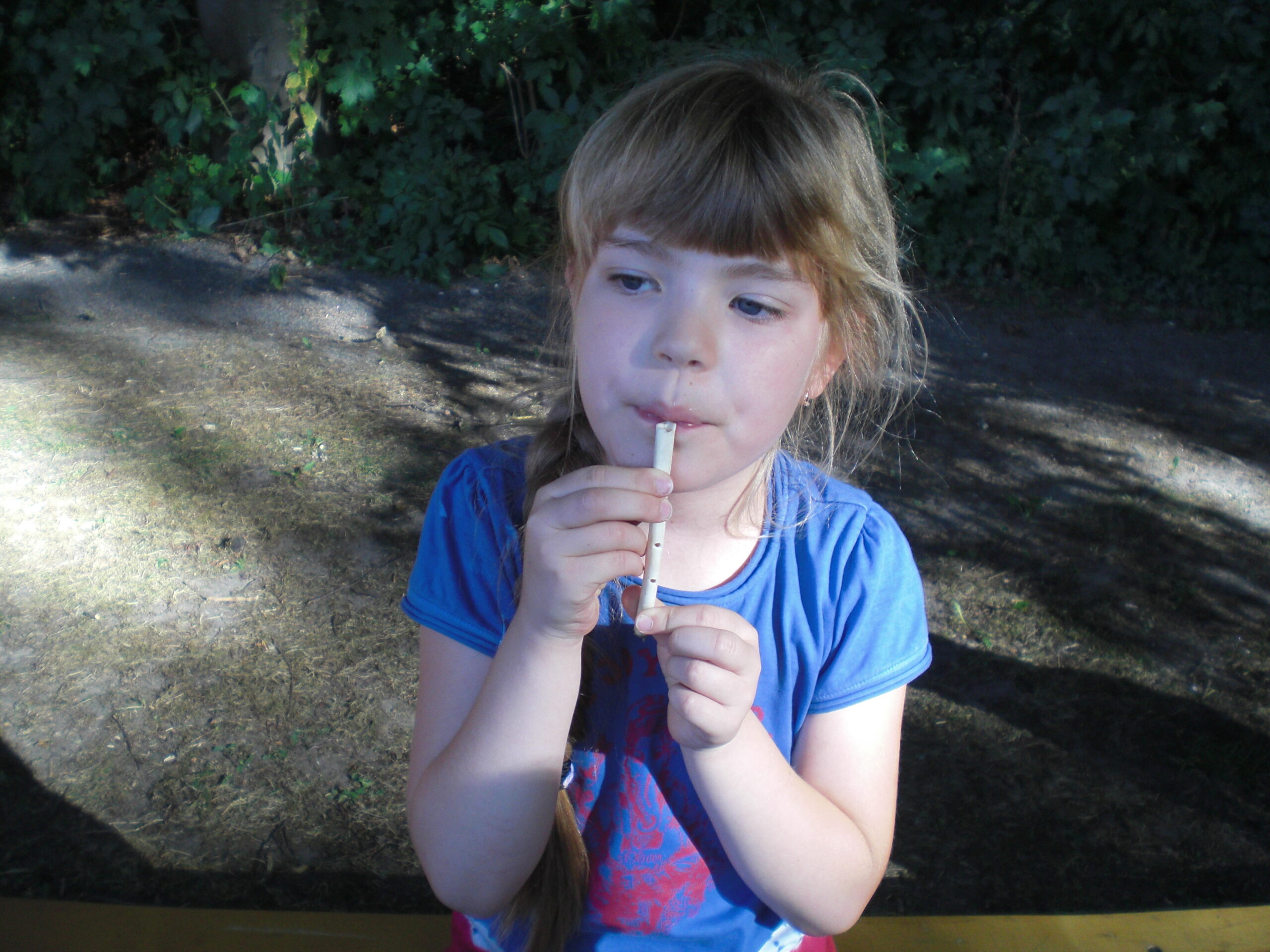 Nach einer leckeren Steinzeitsuppe werden die Vogelknochen zu Flöten. Bei der 4. Aktion durften die Kinder aus Putenknochen Flöten basteln.