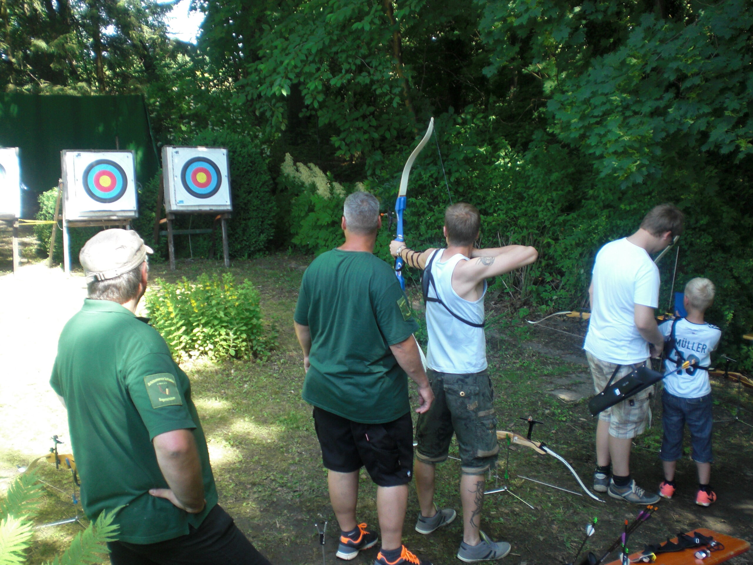 Viele Besucher probierten ihre Kuenste beim Bogenschiessen aus, um den Pokal des Mühlenkönigs zu gewinnen.