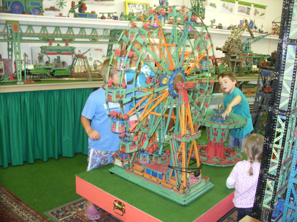 Dieter Bode zeigte den Kindern viele Modelle aus dem Metallbaukasten in Nauen am 4.8.2014.Dieter Bode zeigte den Kindern viele Modelle aus dem Metallbaukasten in Nauen.