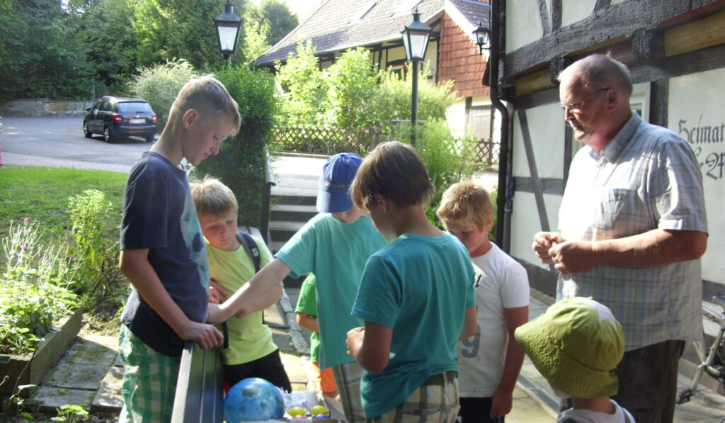 Schatzsuche mit Metallsuchgerät Auch die Schatzsuche mit dem Metallsuchgerät durfte nicht fehlen. Unter wild wachsenden Salat-,Gewürz- und Heilpflanzen am Wegesrand versteckt lagen Pappnägel mit Nummern. Wer die Pflanze anhand der Erklärung von Henning Schacht erkannte durfte mit dem Suchgerät den „Schatz“ aufspüren. Ein kleiner Abstecher nach Nino zum Eisschlecken wurde gern angenommen. Im Heimathaus lagen […]